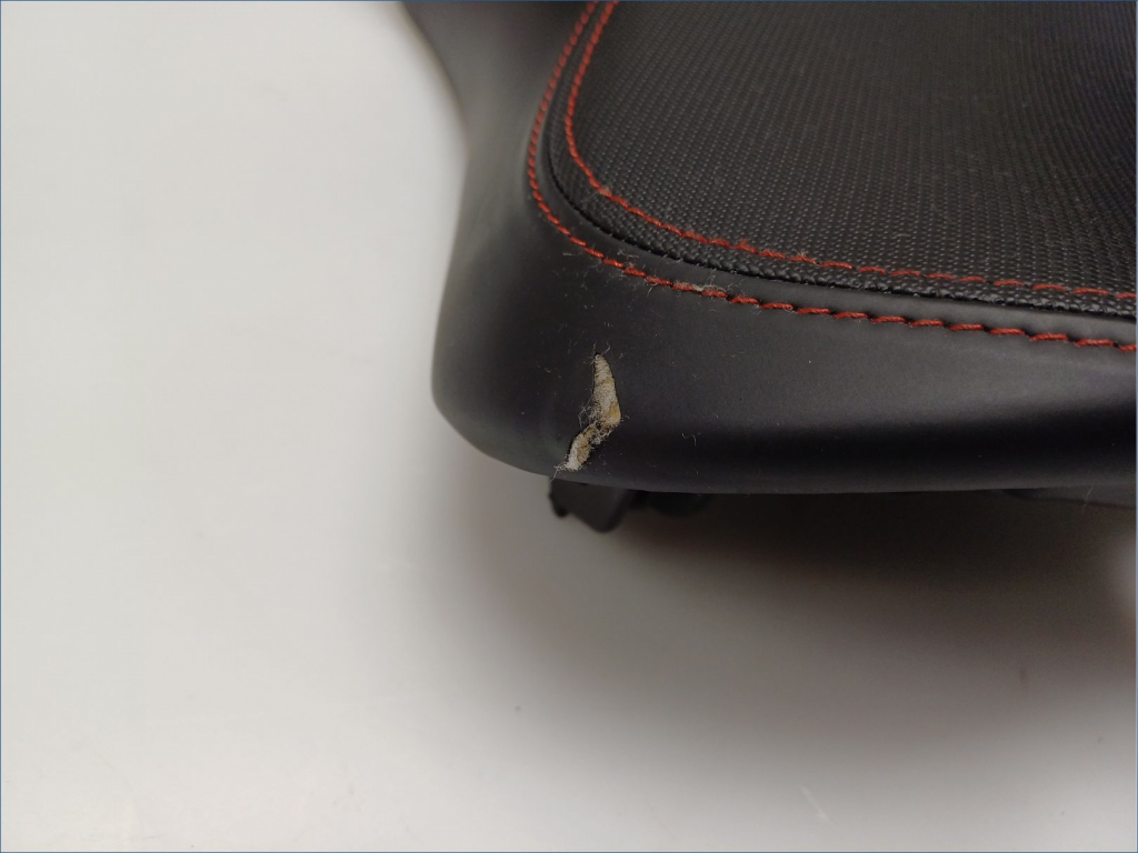 PETITE DECHIRURE SUR L'ARRIERE GAUCHE DE LA SELLE.